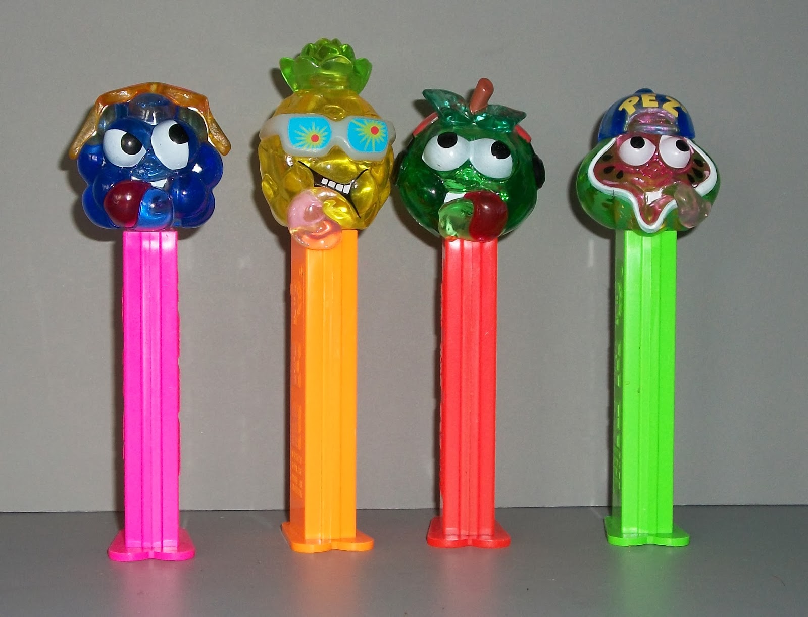 Sourz fruits são quatro Dispensadores PEZ em que as Heads são frutos desenhados pela marca. Blue Raspberry (Framboesa), Green Apple (Maça Verde), Pineapple (Ananás) e Watermelon (Melancia), surgiram no Verão de 2002 e no ano seguinte foram criadas variações em Cristal transparente e colorido. Não serão os Dispensadores mais apreciados de sempre, mas a estranheza das figuras tornam-nos interessantes para qualquer coleccionador! :-)