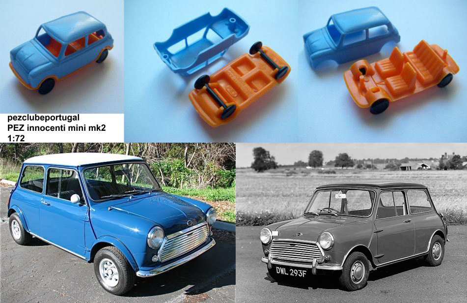 Quase sem precisar de apresentações, o modelo Mini produzido pela British Motor Corporation (BMC) e lançado em 1959 tornou-se um dos carros mais populares de sempre em todo o mundo. Entre algumas variações, surge nos finais dos anos 60 o Mini Mark II com uma nova grelha e entre pequenas modificações, uma janela traseira maior. A produtora italiana de motores e máquinas fundada por Ferdinando Innocenti em 1920, dá também o nome a este modelo Auto PEZ dos anos 70, os quais foram fabricados pela CGGC Grisoni em Itália. Com a sigla PEZ por baixo do carro, foram produzidos nas mais diversas cores, sendo estas, diferentes entre chassi e carroçaria.
