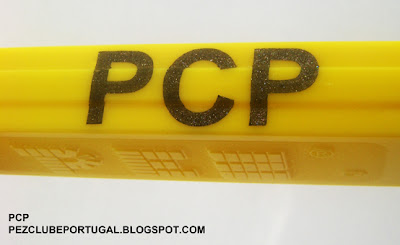September 25, 2012, the Blog pezclubeportugal.blogspot.com makes one year! To celebrate was printed on the Stem of Dispensers, the initials PCP (PEZ CLUB PORTUGAL). These will have a plastic bag closed and numbered with a custom packaging candy! These dispensers, as presented, are not part of the company PEZ CANDY, INC.